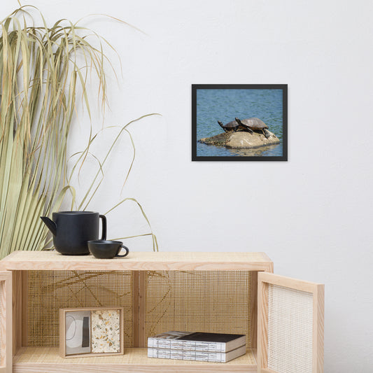 Sunshine Rock with Turtles Animal Wildlife Photograph Framed Wall Art Prints