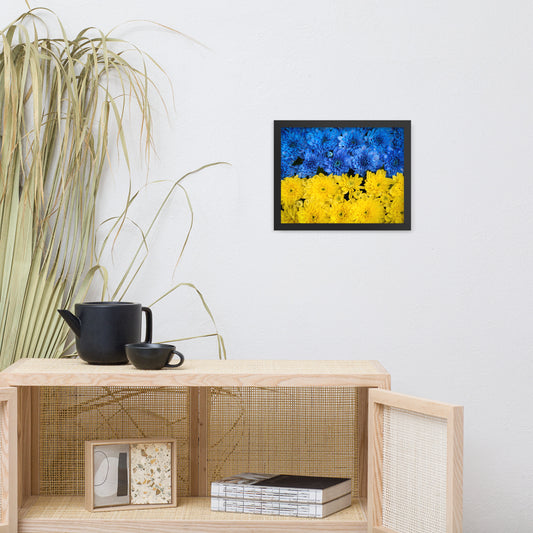 Blue and Yellow Chrysanthemums For Ukraine Refugees Nature Photo Framed Wall Art Print