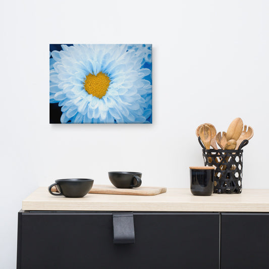 Blue and Yellow Chrysanthemums Floral Botanical Nature Photograph Canvas Wall Art Print