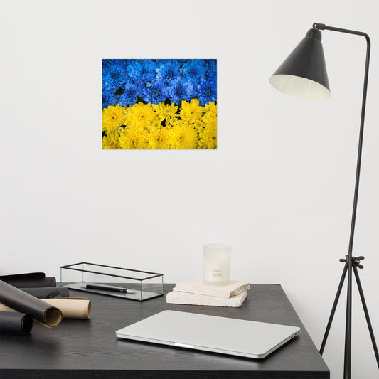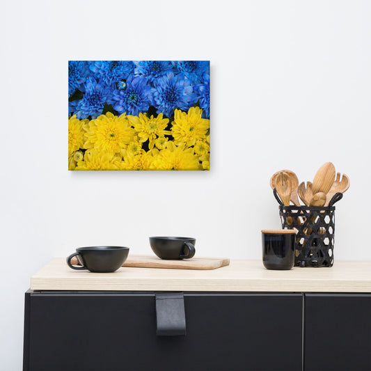 Blue and Yellow Chrysanthemums Nature Photo For Ukraine Refugees Loose Wall Art Print