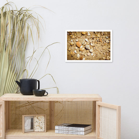Broken Seashells and Sand Coastal Nature Photo Framed Wall Art Print