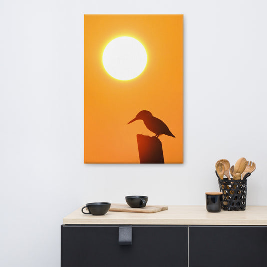 Kingfisher Bird Silhouette on Perch At Sunset Animal Wildlife Nature Photograph Canvas Wall Art Prints