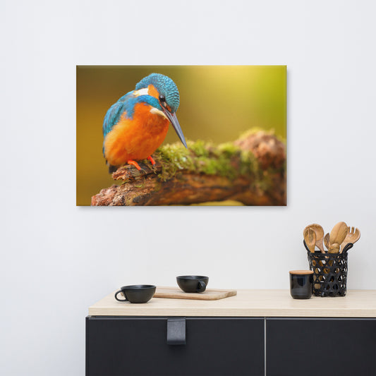 Kingfisher Bird on Perch 2 Animal Wildlife Photo Canvas Wall Art Prints