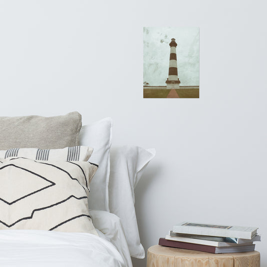 Aged Colorized Bodie Island Lighthouse Landscape Photo Loose Wall Art Print