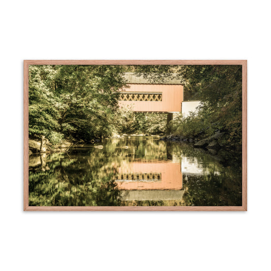 The Reflections of Wooddale Covered Bridge Framed Photo Paper Wall Art Prints