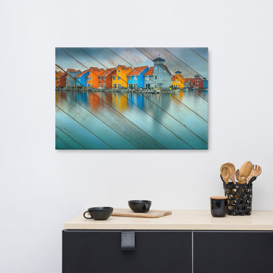 Faux Wood Blue Morning at Waters Edge Coastal Landscape Canvas Wall Art Prints