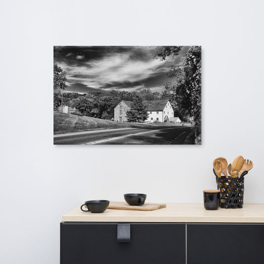 Greenbank Mill - Summer Black and White Rustic Landscape Photo Canvas Wall Art Prints