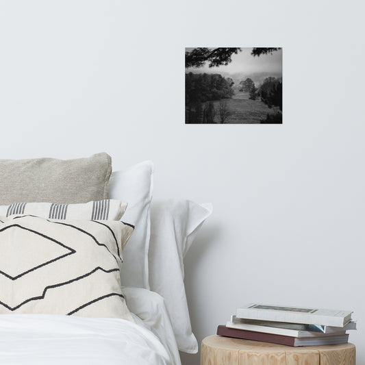 Mist of Valley Forge Rustic Farmhouse Style Black and White Landscape Photo Loose Wall Art Prints