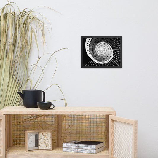 Never Ending Ascent - Equiangular Spiral Black And White Architectural Photograph Framed Wall Art Print