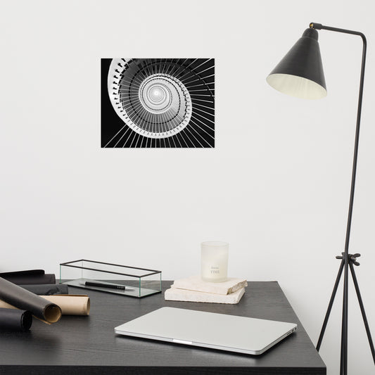 Never Ending Ascent - Equiangular Spiral Black And White Architectural Photo Loose / Unframed Art Print