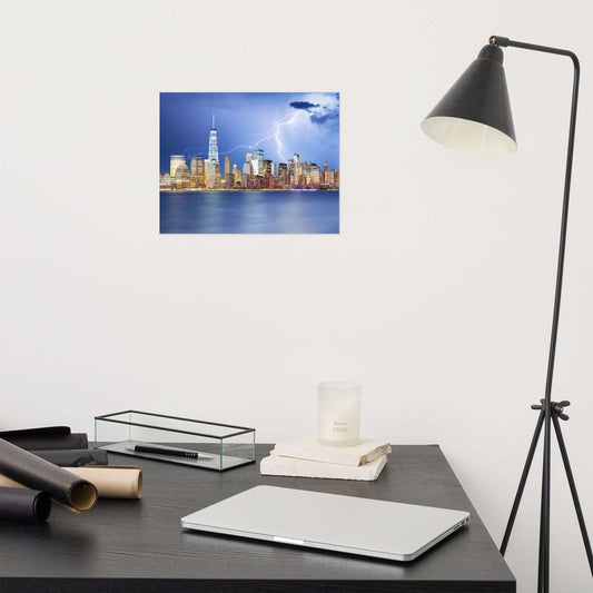 Electrifying New York Lightning Strikes the Skyline Architectural Photograph Framed Wall Art Print