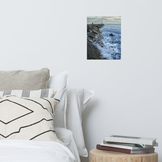 Splashing on the Jetty Rustic Coastal Landscape Photo Loose Wall Art Print