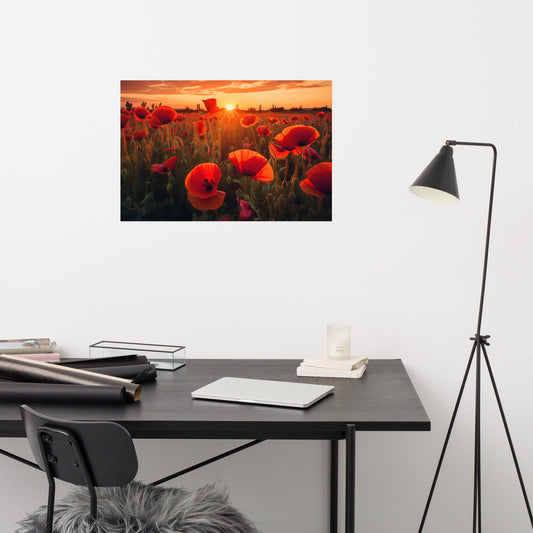 Field of Dreams Poppy Field Sunset Photorealism - Digital Artwork Loose Art Print