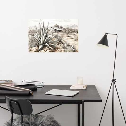 High Desert Homestead Pencil Drawing Illustration - Digital Artwork Loose Art Print