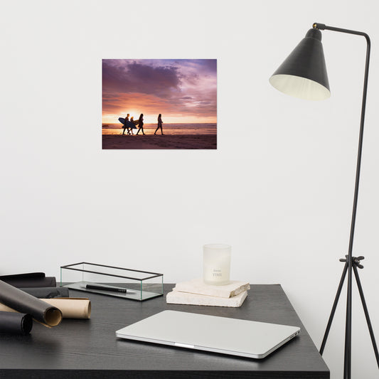 Surfers and Sunset on the Shore Coastal Landscape Lifestyle Photograph Loose Wall Art Print