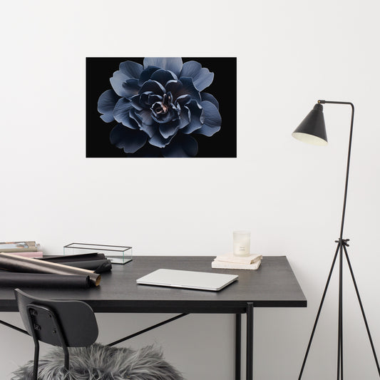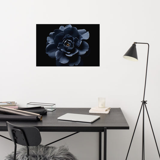 Starlit Blooms Dark Navy Blue Flower - Realism Painting Digital Artwork Loose Art Print