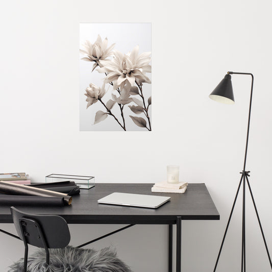 Timeless Bloom Realism Painting Gray Floral Digital Artwork Loose Art Print