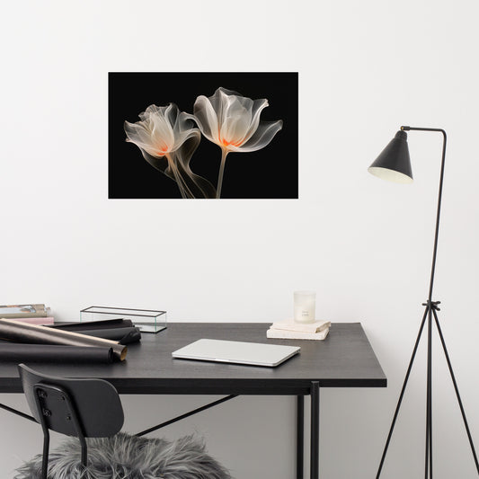 Ghostly Bloom X-Ray Effect Illustration - Digital Artwork Loose Art Print