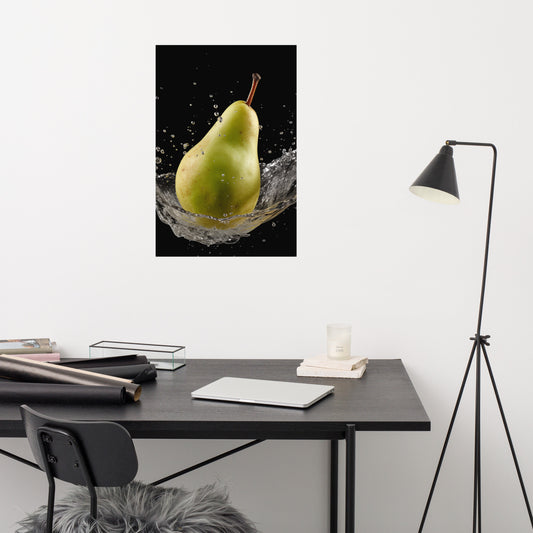 Fruity Fusion Pear in Water Photorealism - Digital Artwork Loose Art Print
