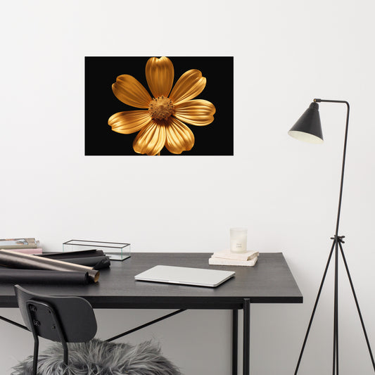 Golden Bloom Floral Gold Color Photorealism - Digital Artwork Loose Art Print