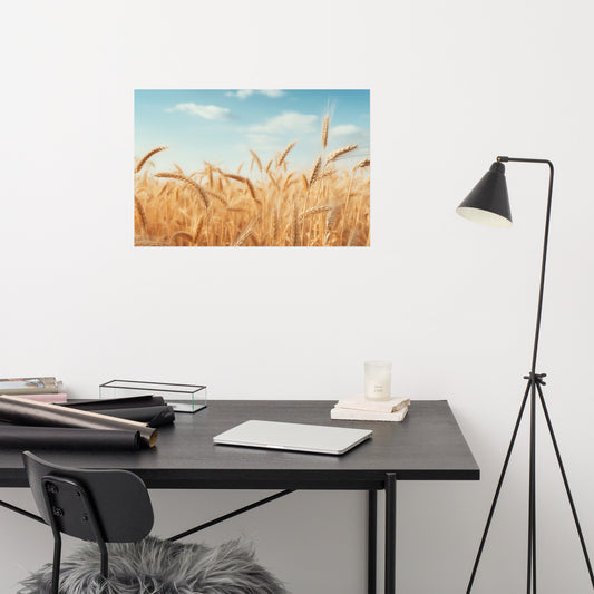 Golden Harvest Minimal Botanical Rustic Subdued Wheat Crops Photorealism - Digital Artwork Loose Art Print