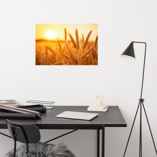 Golden Hour Harvest Minimal Botanical Rustic Subdued Wheat Crops Photorealistic - Digital Artwork Loose Art Print