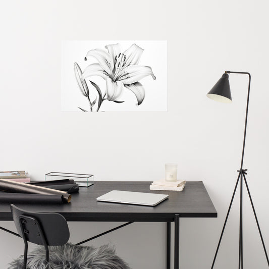 Gentle Awakening Lily Pencil Sketch Charcoal Digital Artwork Loose Art Print