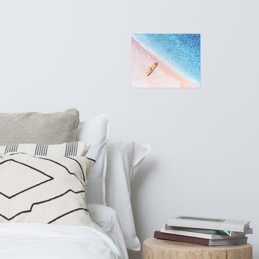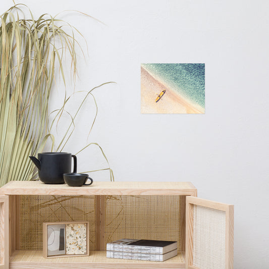 Yellow Canoe and Blue Sea with Soft Violet Effect Landscape Photo Loose Wall Art Prints