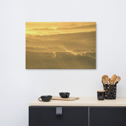Golden Mist Valley - Hills & Mountain Range Rural Landscape Canvas Wall Art Prints