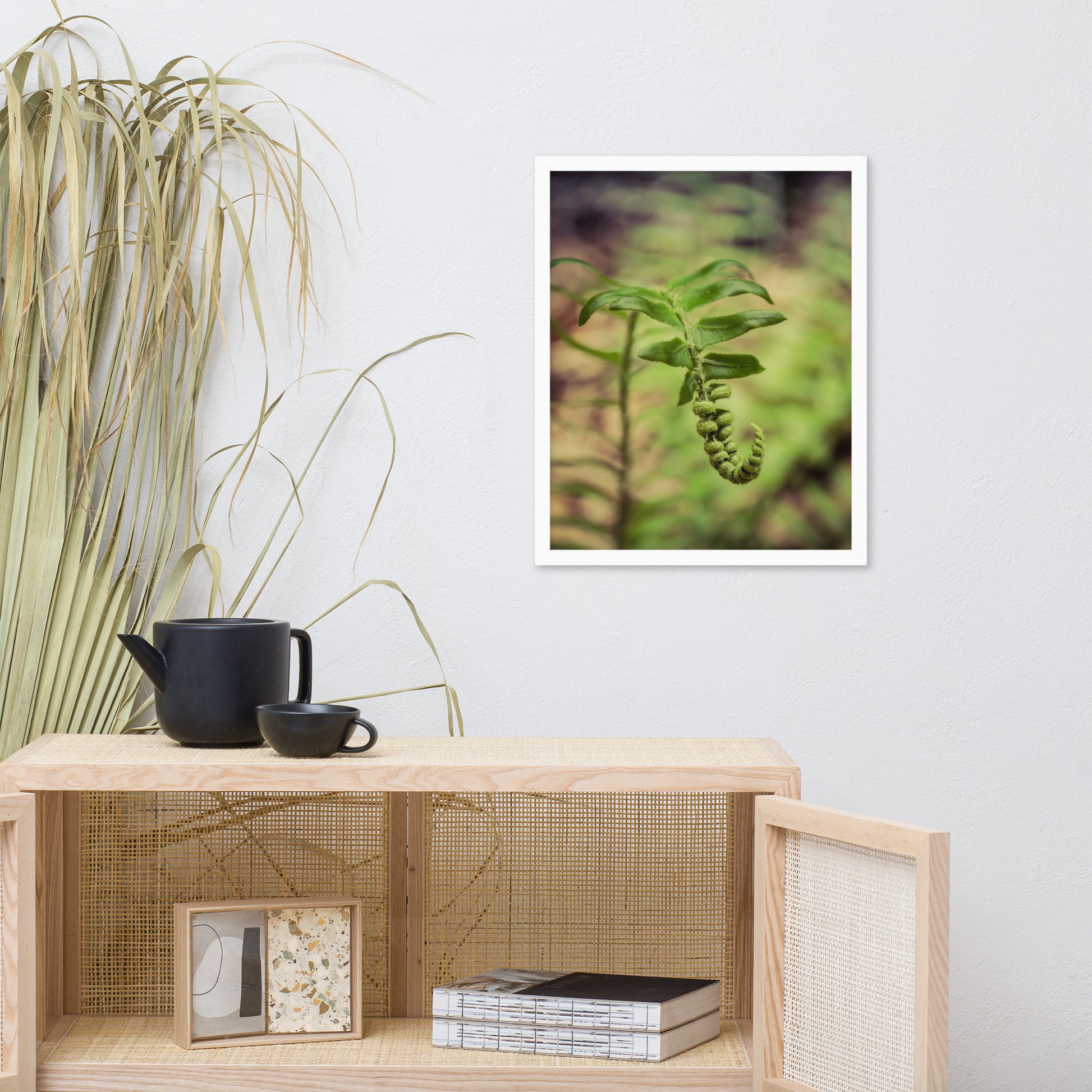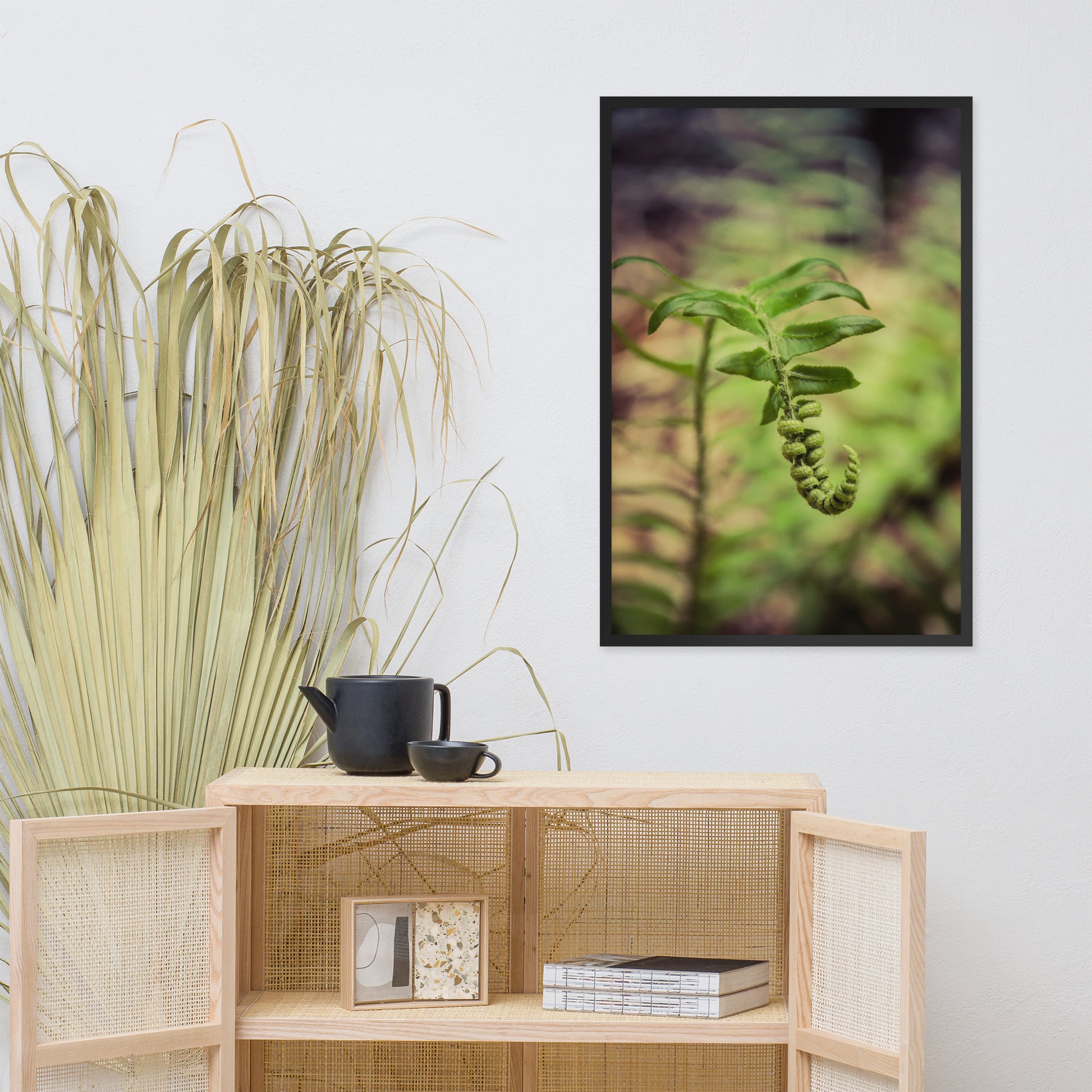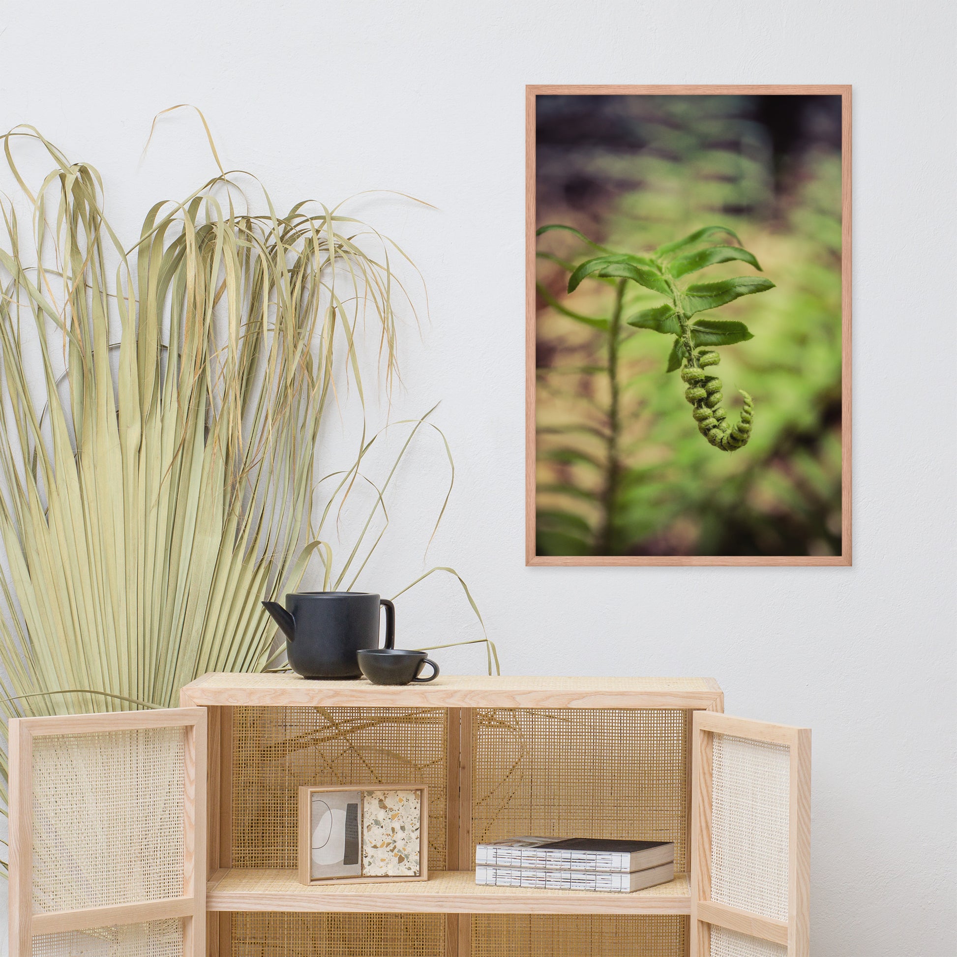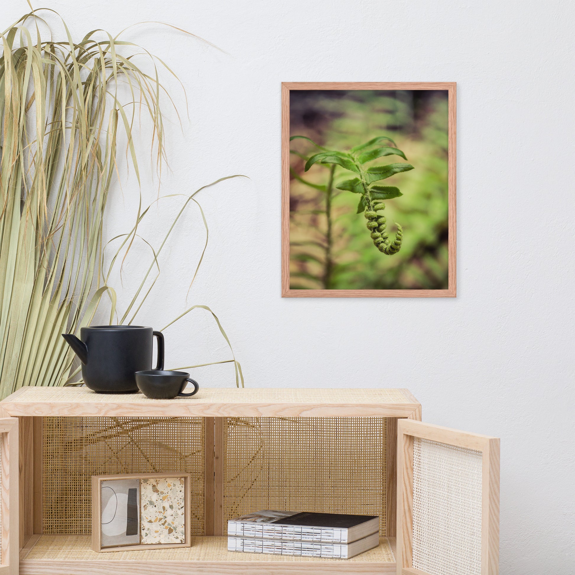 About this rustic framed artwork: Bring the tranquil beauty of the forest into your home with "Growth of the Forest Floor." This captivating framed artwork showcases a delicate fern sprout unfurling its leaves in a moment of rebirth and rejuvenation. The soft focus and dreamlike effect create a nostalgic atmosphere, evoking a sense of wonder and appreciation for the subtle miracles of nature.