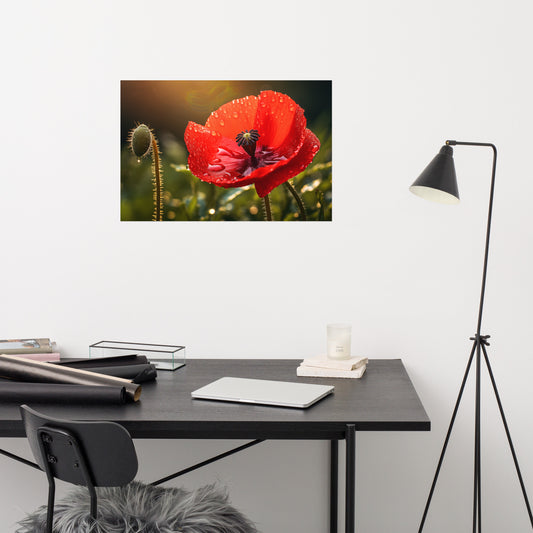 Prints of Flowers for Framing: Crimson Sunset Serenade Poppy Field Retro Subdued - Digital Artwork Loose Art Print