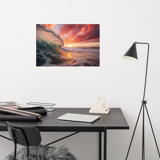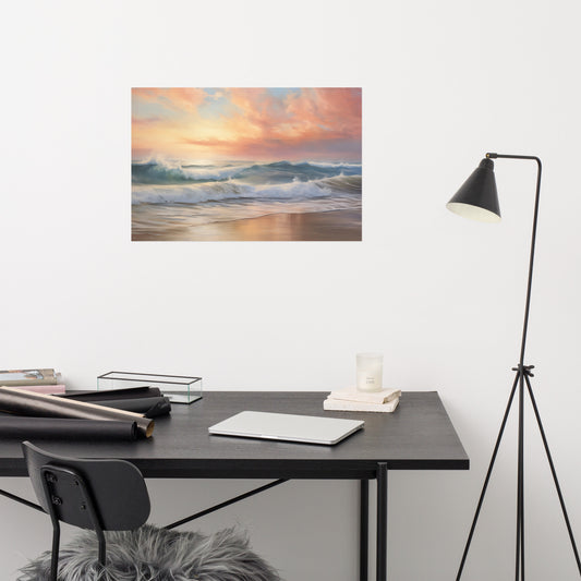 Ocean Wall Art: Crimson Coastline Realism Painting Digital Artwork Loose Art Print