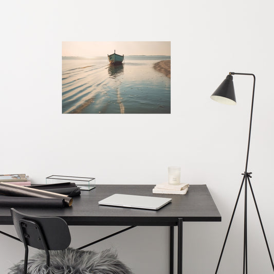 Awaiting Departure Abandoned Weathered Boat Beach Subdued Photorealism - Digital Artwork Loose Print
