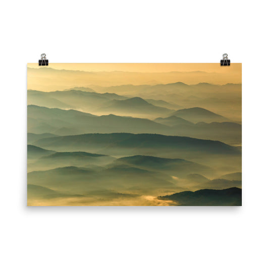Foggy Mountain Layers at Sunset Landscape Photo Loose Wall Art Prints
