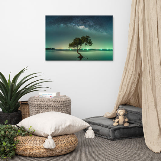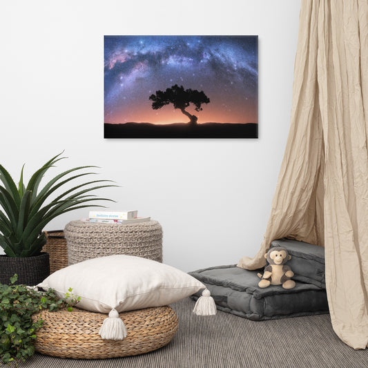 Glowing Milky Way Galaxy with Tree Canvas Wall Art Prints