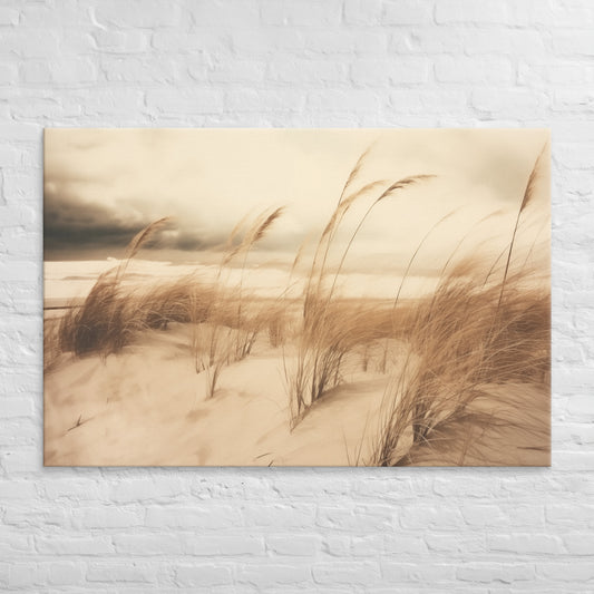 Seagrass Dancing in the Wind Subdued Retro Coastal Photorealistic Digital Artwork Canvas Art Print