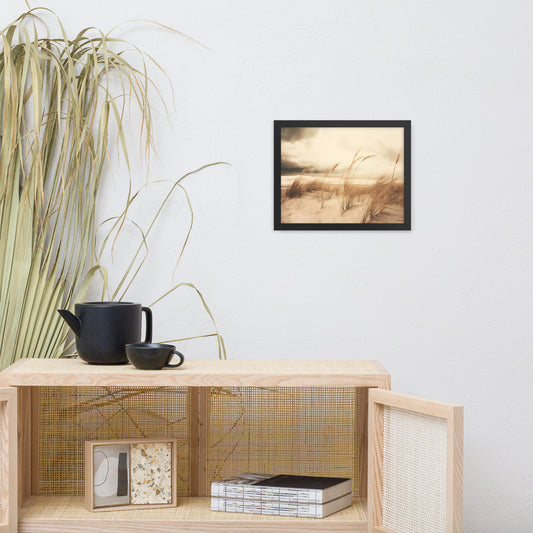 Seagrass Dancing in the Wind Subdued Retro Coastal Photorealistic Digital Artwork Framed Art Print