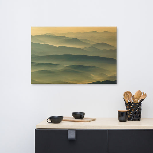 Foggy Mountain Layers at Sunset Rural Landscape Canvas Wall Art Prints