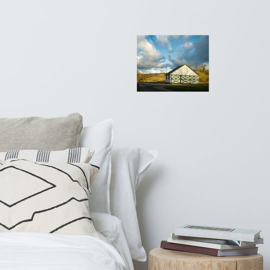Patriotic Weathered Barn in Field - Glass Plate Framed Photo Paper Wall Art Prints