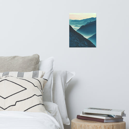Misty Blue Silhouette Mountain Range Rustic Farmhouse Style Landscape Photo Loose Wall Art Print