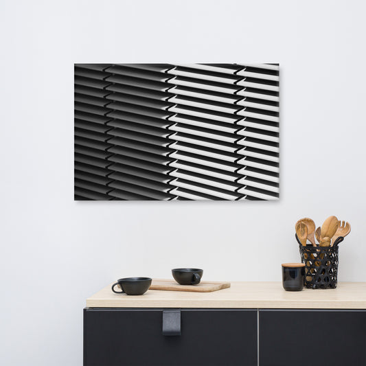 Black and White Minimal Line and Shadow Pattern Canvas Wall Art Print