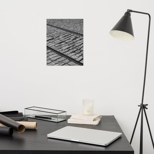 Black and White Train Tracks Cobblestone River Street Savannah Ga Loose Wall Art Print