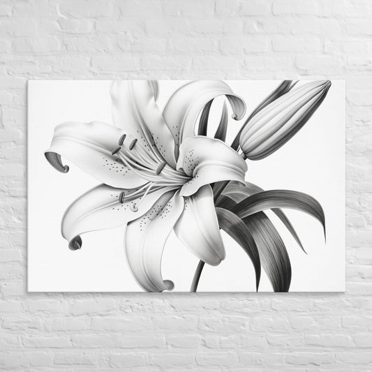 A Moment of Bloom Lily Floral Digital Artwork Pencil Sketch / Charcoal Drawing Canvas Wall Art Print