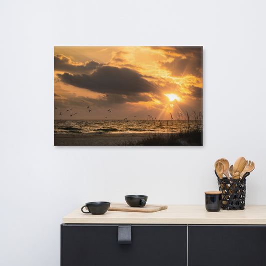 Cloudy Rainy Sunset De Soto Beach Coastal Landscape Canvas Wall Art Prints