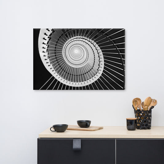 Never Ending Ascent - Equiangular Spiral Black And White Architectural Photograph Canvas Wall Art Print
