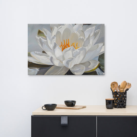 Peaceful White Waterlily Floral Botanical Digital Artwork Canvas Wall Art Print