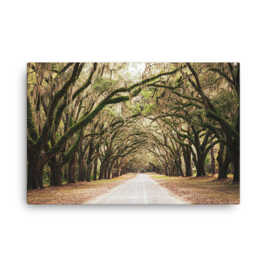 Live Oaks and Spanish Moss Road Way Savannah Ga Canvas Wall Art Print