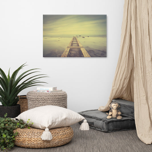 Moody Ocean and Sky Wooden Pier With Intrigued Trance Effects Canvas Wall Art Prints