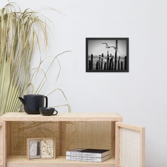Flying Seagull in Black and White Animal Wildlife Photograph Framed Wall Art Prints