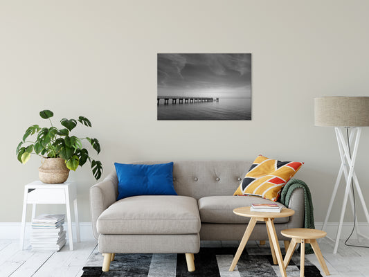 End of the Pier Black and White Coastal Landscape Canvas Fine Art Photography Print